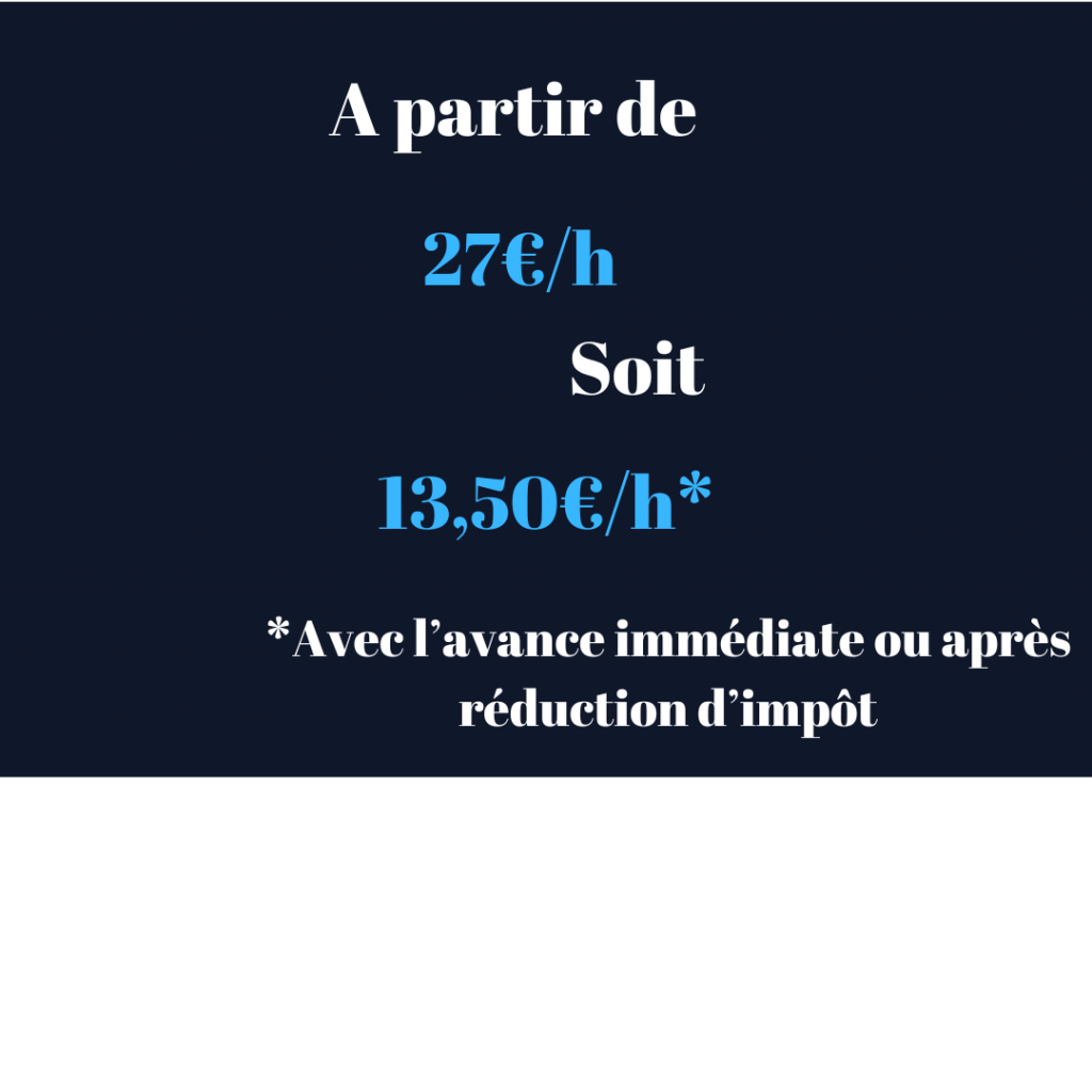 - Une prestation de 27€/H vous revient à 13,50€/H après réduction